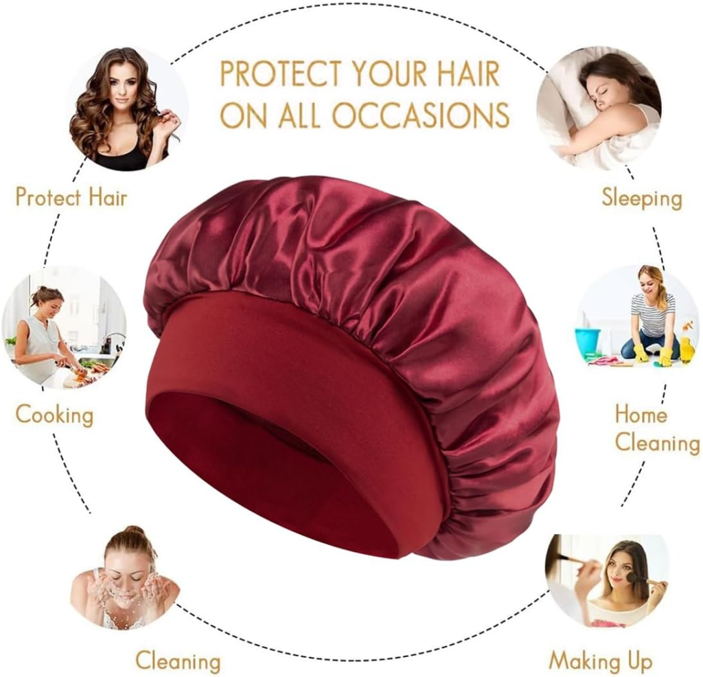 🛒 Touca de Cetim Premium – reduz atrito e quebra durante o sono.